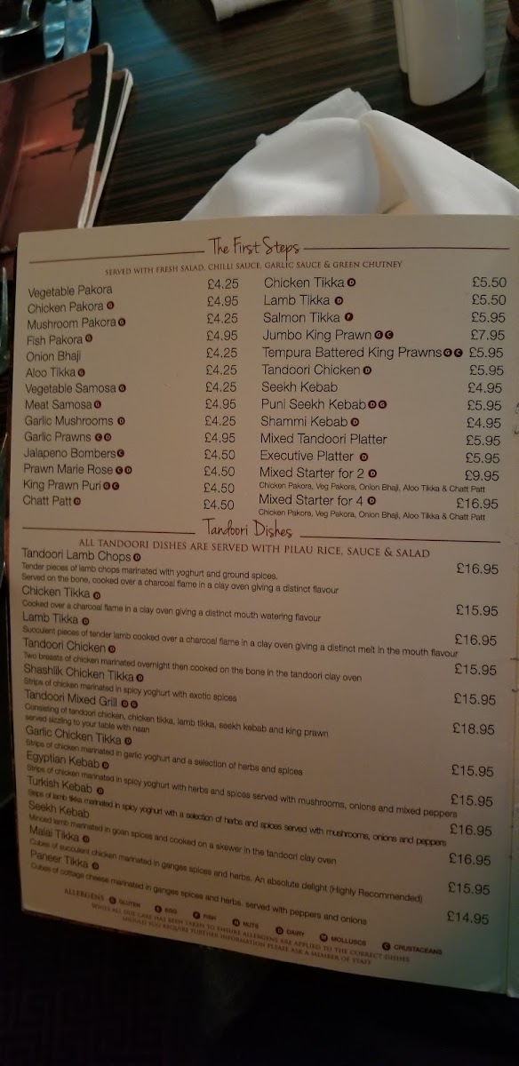 Gluten, Dairy. Chicken pakora, veg pakora, onion bhaji, samosa & chicken tikka